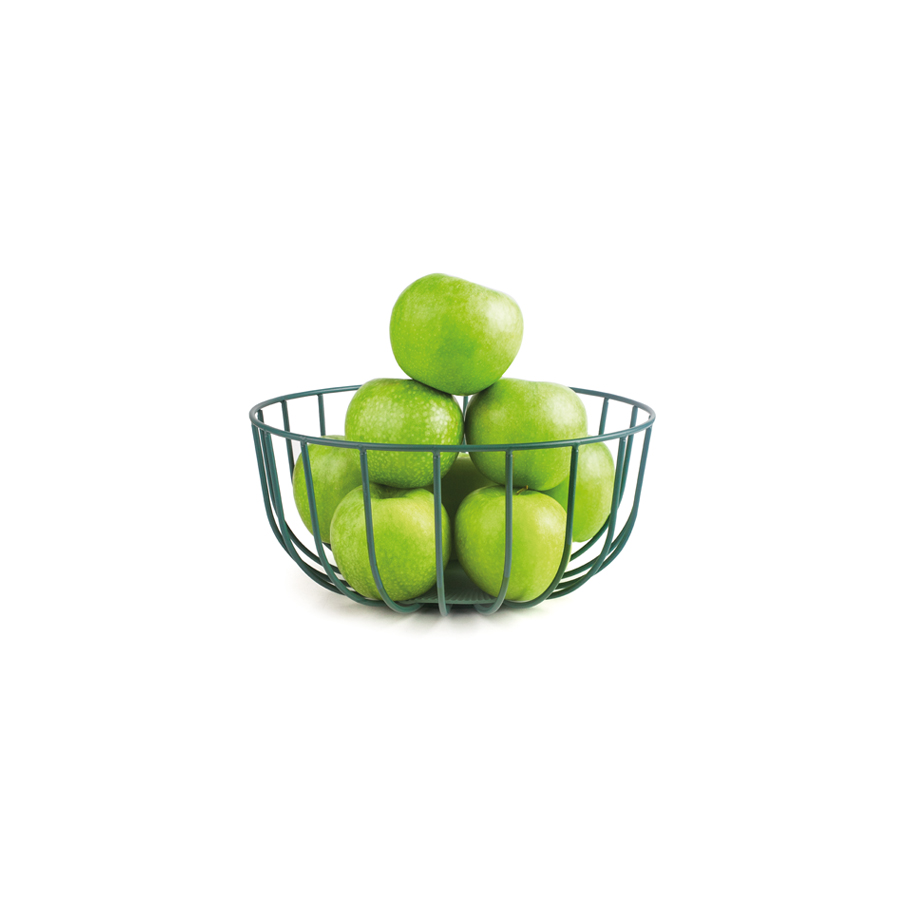 El Frutero Metálico Verde combina una estructura funcional y decorativa.
