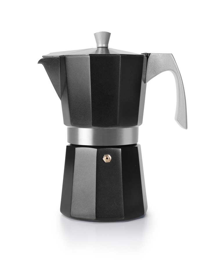 Cafetera express Toscana. Cafetera color azul y con recubrimiento interior antiadherente, para una mayor higiene.Aluminio fundido con fondo de acero inoxidable, full induction.Tienen máxima eficiencia energética en placas de inducción. Medidas para 3/6, 9 y 12 tazas. Es apta para todos los fuegos.