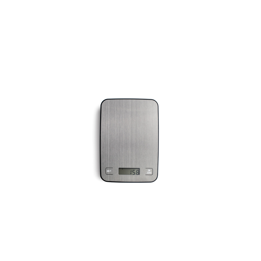 Báscula digital mini de cocina fabricada en acero inoxidable.