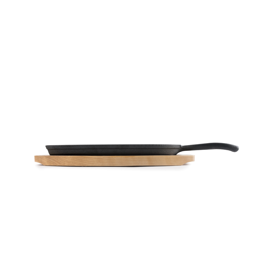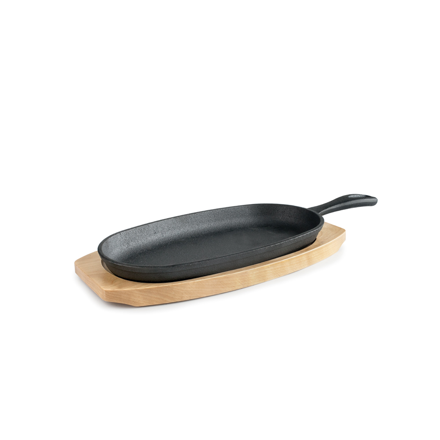 Plato de Hierro Fundido Oval con Mango + Base de Madera
