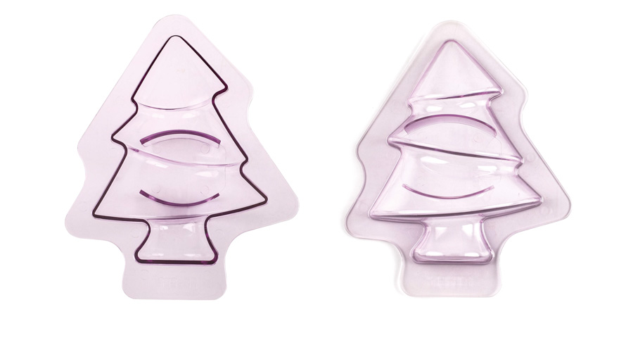 Molde abeto en 3D, dos piezas fabricado en SAN y libre de BPA. Es un diseño de IBILI Menaje y lleva receta incluida